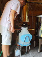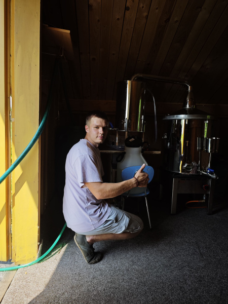Čerstvě nařezané květy putují rovnou do destilační nádoby. Nepoužívám žádné přísady, jen čistou vodu a páru. Pára prochází skrz levanduli, vytahuje z ní vonné látky a nese je s sebou do chladiče, kde se všechno zase promění zpátky v tekutinu. A tam se stane ta krásná věc: oddělí se éterický olej a vznikne hydrolát - jemná, čistá levandulová voda.